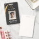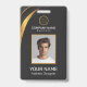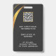Modern black and gold badge design features your business logo and custom QR code on the back. Add employee name, company name/title, logo (photo or other graphic) and contact information. You can customize the text size, font and color to suit your own personal preference. Input a URL address to create a scannable QR code linked to your website, social media profiles, or any other platform.