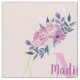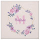 Personalized quilt square block with name and monogram. Beautiful blush pink fabric with a floral pink and purple wreath and thin simulated gold frame. Customize it by replacing the sample initial and name with a custom name and monogram letter. Purchase a single block by choosing the swatch option or get fabric by the yard and cut multiple identical blocks out of it. Elegant and stylish personalized name quilt block for your unique quilting creations.