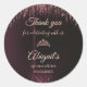 Elegant personalized Quinceañera round stickers customized with a name and event date. Designed in a rich burgundy background with rose gold script, these stickers are perfect for favor bags, envelope seals, gift boxes, and party decorations.