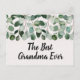 Celebrate your nature-loving grandma on Grandparents Day with our enchanting Personalized Quote Green Eucalyptus Leaves Postcard. Delicate watercolor eucalyptus leaves in lush green surround the heartfelt quote "The Best Grandma Ever," written in a charming brush script font. You can even add your personal touch by editing the text, making it truly unique. Immerse yourself in the beauty of nature as you send warm wishes to your beloved grandma. This artful postcard, adorned with floral greenery, is a perfect tribute to her love and appreciation for the natural world. Show her she's cherished with this personalized masterpiece.