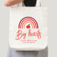 Show your love and appreciation with our Rainbow Personalized Teacher Appreciation Quote Tote bag, with the saying "Big Hearts teach little minds", a rainbow, and a cute apple. This tote bag is a unique gift for Teacher Appreciation Day.