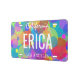 personalized state, city/town, and name rainbow colored bubbles license plate
