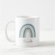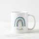 A simple whimsical pastel blue rainbow personalized mug. A great friendsgiving mug.