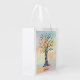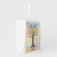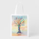 These Reusable Grocery Bags are decorated with a mosaic family tree in the colors of the rainbow on a watercolor background.