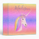 Personalized Rainbow Unicorn Glitter 3 Ring Binder