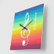 Personalized Rainbow Watercolor Treble Clef Square Wall Clock