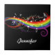 Personalized Rainbow White Music Notes on Black Ceramic Tile