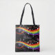 Personalized Rainbow White Music Notes on Black Tote Bag