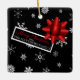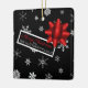 This cute square ornament looks like a festive wrapped Christmas gift! It features the trendy Christmas colors black, red and white. Falling white snowflakes on a black background simulate the wrapping paper and it's adorned with pretty, realistic looking red star shaped bow and a Christmas tag that can easily be personalized. This cute ornament will make a fun gift for family and friends!