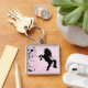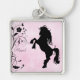 Personalized Pink Rearing Silhouette Horse and Flowers Keychain.