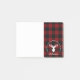 The product design features a silhouette of a deer on a classic red and black buffalo plaid pattern. Combined with your own personalized text, this composition makes farmhouse country-style, modern, and unique post it notes.