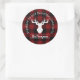 The product design features a silhouette of a deer on a classic red and black buffalo plaid pattern. Combined with your own personalized text, this composition makes farmhouse country-style, modern, and unique stickers for family reunion, Christmas, and any other special occasions.
