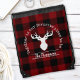 The product design features a silhouette of a deer on a classic red and black buffalo plaid pattern. Combined with your own personalized text, this composition makes a rustic, modern, and unique drawstring bag - Gift idea for family reunion, Christmas holiday, or any other special gatherings!