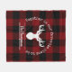 The product design features a silhouette of a deer on a classic red and black buffalo plaid pattern. Combined with your own personalized text, this composition makes a farmhouse country-style, modern, and unique fleece blanket for Christmas, family reunion, or any other special occasions!