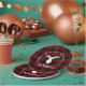 The product design features a silhouetted profile of a reindeer on a classic red and black buffalo plaid pattern. Combined with your own personalized text, this composition makes farmhouse country-style, modern, and unique paper plates for Thanksgiving, Christmas holiday, family reunion, or any other special gatherings!