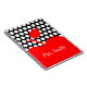 Stem, leaf and top of an apple shape in red against black and white polka dots. This clipboard can be personalized for your favorite teacher. You can change the background color behind the polka dot pattern. You can customize the text color to create a unique, custom gift for a back-to-school gift for the classroom or Teacher Appreciation Week. Transfer your personal design to a planner or binder to create a custom gift for your favorite teacher. The polka dots can be tiled onto larger products.