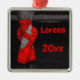 This metal ornament features red ballerina slippers. Beside the picture, are the name and date which can be changed and personalized. Change the font style, size, placement and color and make it your own!