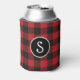 Personalized Red & Black Buffalo Plaid Monogram Can Cooler