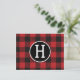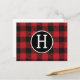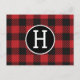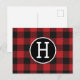 Personalized Red & Black Buffalo Plaid Monogram Postcard