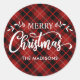 Personalized Red Black Christmas Plaid Classic Round Sticker