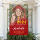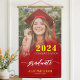 Celebrate your graduation in style with our custom Graduation Party Banner! Featuring a vibrant photograph of a young woman in a red graduation cap and boho-style dress, this banner captures the essence of joy and accomplishment. Surrounded by a serene boho-inspired background with wildflowers, a rustic wooden bench, and a picturesque tree-lined path, this banner is both elegant and natural. Add your name, school, and class of 2024 details for a personalized touch. Ideal for any graduation party, this unique design combines modern elegance with floral accents, bold text, and a retro vibe. Click to customize your banner today and make your graduation celebration truly unforgettable!