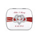 Add a special touch to your wedding shower or reception. Wedding candy jars and tins make fantastic wedding favors and keepsakes. Personalized wedding candy jars add a pop of color to your wedding tables when filled with bright candies. Accent your tables and please your guests. Personalize by changing the text in the fields provided. You can change font style, size, and color.
