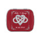 Add a special touch to your wedding shower or reception. Wedding candy jars and tins make fantastic wedding favors and keepsakes. Personalized wedding candy jars add a pop of color to your wedding tables when filled with bright candies. Accent your tables and please your guests. Personalize by changing the text in the fields provided. You can change font style, size, and color.