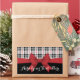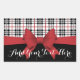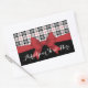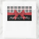 This product design features an illustrated red ribbon and tartan plaid pattern in black, white, and red. With its unique classic graphics, it makes modern chic rectangular stickers with personalized text.