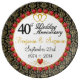 Personalized Red Rubies Porcelain 40th Anniversary Plate Black and gold-tone damask provides a backdrop for a lovely likeliness of a string of red rubies over a gold-tone ring. Completely personalized with the names of the celebrating couple and their anniversary dates - simply fill in the blanks! This will truly be the most unique gift the happy couple receive on their special day!