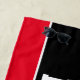 Personalized soccer themed beach towel design for kids and teens features a soccer ball customized with the player's uniform number, custom text for the player's first or last name, and modern text for the soccer club team name. Makes a unique favor gift for tournaments and pool parties with the team! Stylish and modern design features sporty varsity jersey lettering and simple horizontal stripes. The color scheme of red, black and white can be modified to coordinate with your team colors.