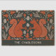 Two red squirrels in a forest of acorns, oak leaves, pine cones and berries. Original art by Nic Squirrell. Change the family name to personalize.