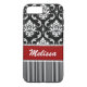Personalized Red, White, Black Damask Striped Case-Mate iPhone Case