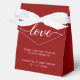 Personalized these red and white favor boxes with the bride and groom's names, special message and wedding date. Elegant, simple and chic with in a moderns script font for the word that says it all "Love". (see other bow color options).
