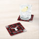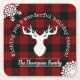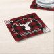 Personalized Reindeer Red and Black Buffalo Plaid Square Paper Coaster