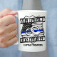 Personalized Retired Police Officer Coffee Mug with a police badge, handcuffs, thin blue line flag. Add the name of the retiring officer for a one of a kind retiree gift.