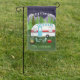 Flag bracket is super easy to assemble. There is a prong fork that goes into the ground. I dug a shallow hole to bury the prongs and still had enough height. Reinforced stitching on for the flag opening. Colors are true to the website. Mona Lisa's sign with the text is easy to read, the text is clear and not blurry.