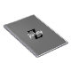 This personalized notebook features a black monogram and white retro script name on a gray background.