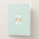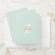 These personalized folders feature a white monogram initial and cantaloupe orange retro script name on a seafoam green background.