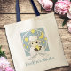 Personalized Retro Pastel Blue Cute Cartoon Lamb Tote Bag