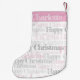 The main body of the stocking is in pink and white with traditional newspaper print.