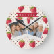 Personalized Retro Strawberry Polka Dot Vintage Round Clock
