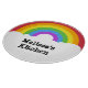 Personalized Retro Style Round Rainbow and Clouds Cutting Board