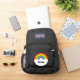 Create your own personalized backpack with a colorful touch. This backpack features a round graphic of a rainbow in a retro style with white clouds below. Add your own name or other text in bold black lettering to the white clouds.