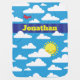 This adorable baby blanket has a blue sky with puffy clouds and a smiling sun & airplane on one side and a sleepy moon and rocket ship on the reverse nighttime sky.