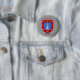 Spanish surname Reyes historical arms Pin-back Button. First name text is fully customizable. Change the color of the background, it's customizable also!
