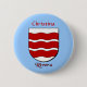 Spanish surname Rivera historical arms Pin-back Button. First name text is fully customizable. Change the color of the background, it's customizable also!