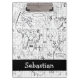 Personalized Robot Rocket Ship And Alien Moon Black And White Pattern clipboard from Ricaso