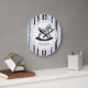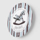 Personalized rocking Horse Wall Clock in blue brown and white.