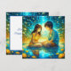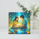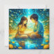 Personalized anime girl and boy on a romantic night Valentine's Day card. Pretty blue and gold details and water reflection.