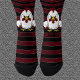 Cute white cartoon rooster on a background of burgundy and black stripes. ***Please note - change the name/personalization on each sock individually -